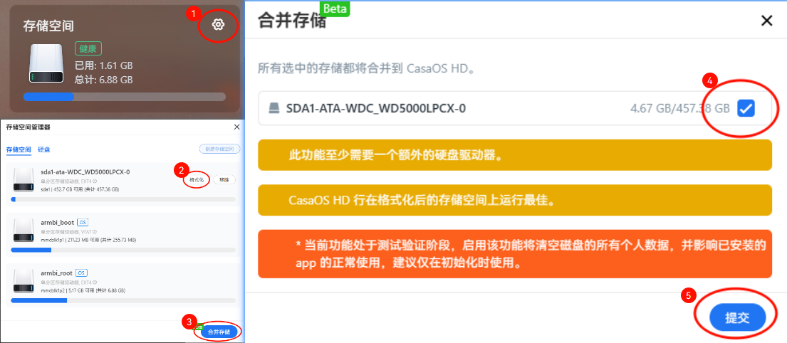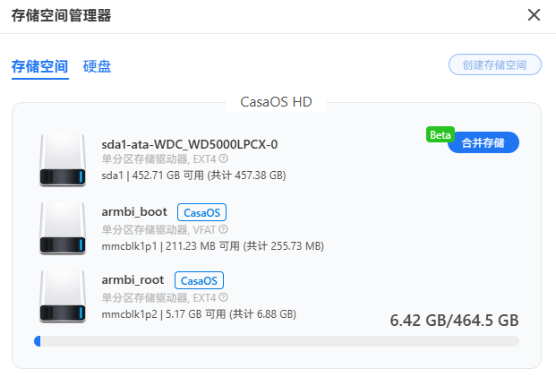 如果这里没有识别到你的硬盘请先使用DiskGenius等磁盘工具将你的硬盘格式化为CasaOS可识别的类型如:EXT4